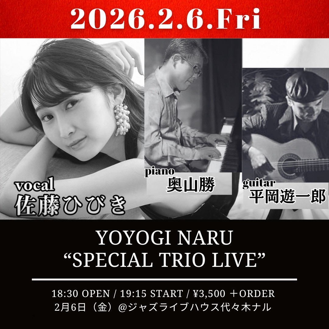 ステージが近くアットホームでお食事も美味しい「代々木NARU」での月1レギュラーLIVE。気軽にJAZZライブを楽しみたい方にオススメです。
