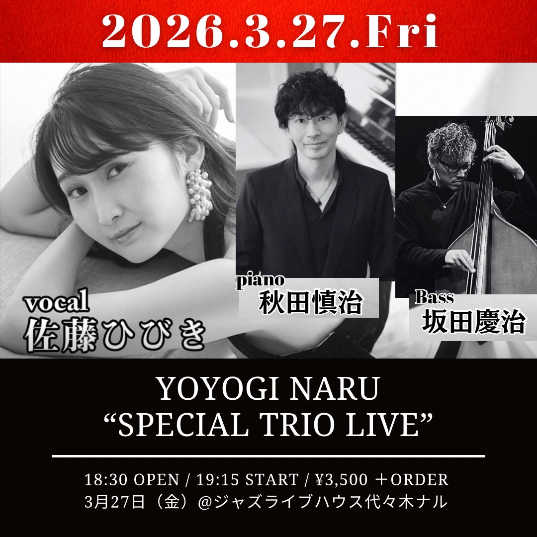 ステージが近くアットホームでお食事も美味しい「代々木NARU」での月1レギュラーLIVE。気軽にJAZZライブを楽しみたい方にオススメです。